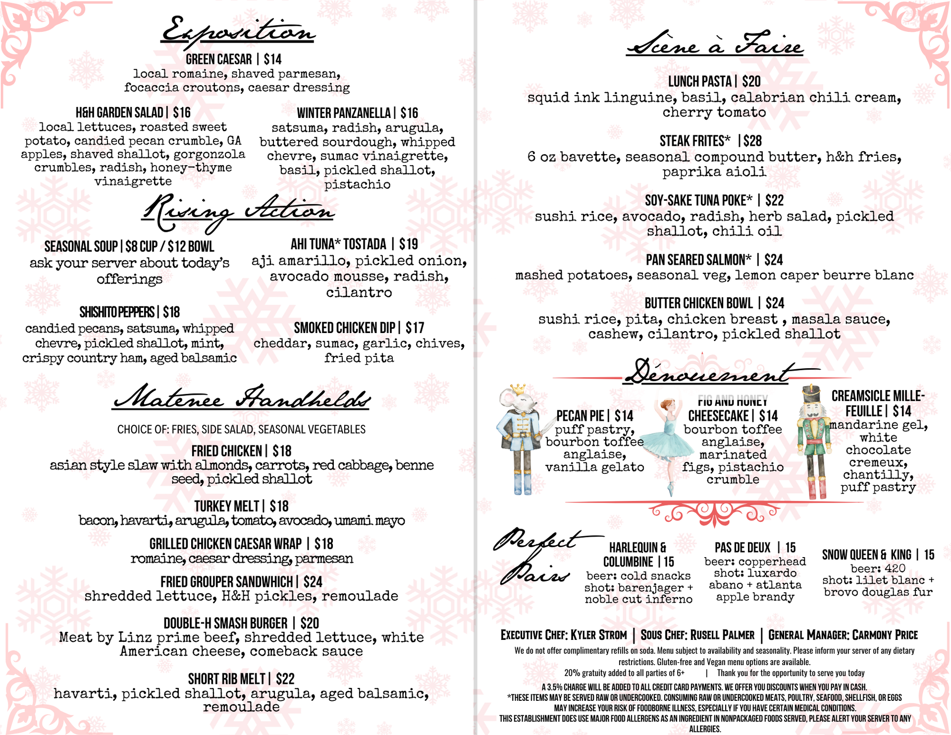 If you're looking for the perfect lunch on Marietta Square, look no further than our famous smash burger. Originally created by our owner Scott McCray after enjoying a number of cocktails and feeling quite “smashed”; Scott created the burger that has since become a fan favorite for anyone looking for a quick but delicious lunch on Marietta Square. This juicy burger features a double patty made from Allen Brothers ground beef, our famous H & H special sauce, and perfectly complemented by a smooth and melty Comté cheese. Cooked in the traditional smashburger style, the fresh-beef patties always come out crispy on the outside and juicy on the inside. Pair this delicious burger with one of our famous craft cocktails (to pay homage to its libation fueled creation) for the best Marietta has to offer!